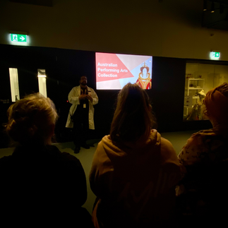 The tour lasted an hour and fifteen minutes. It was not possible to see all 850,000 items. Some of the items are displayed online, so if you cannot take the tour, you can view photos and descriptions on the Australian Performing Arts Collection website and book a tour here at the Arts Centre website.